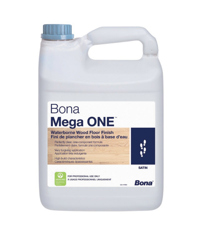 Bona Mega ONE® est un vernis à base d’eau écologique, non jaunissant et sans odeur disponible en MAT, SATINÉ OU SEMI-LUSTRÉ. Le produit est recommandé pour un usage résidentiel à circulation élevée.